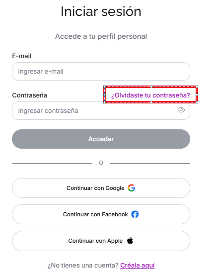 En la pantalla de inicio de sesión, selecciona la opción “¿Olvidaste tu contraseña?”.